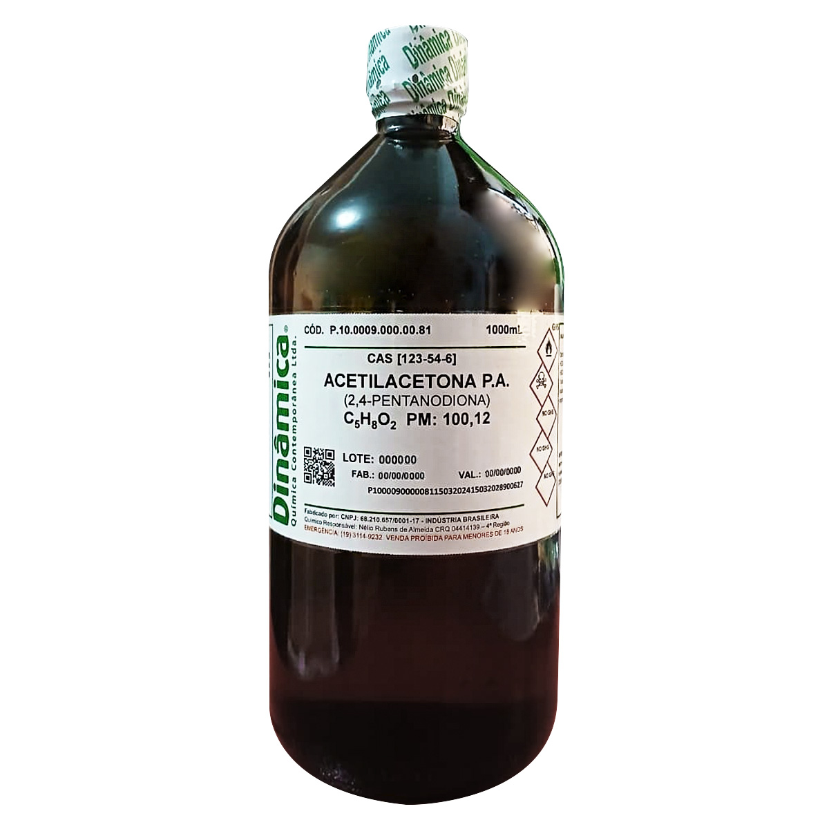Acetilacetona PA, produto técnico indicado para uso geral em aplicações laboratoriais, sínteses químicas e processos industriais. Fornecido em frasco de 1000 mL, com excelente desempenho e custo-benefício.