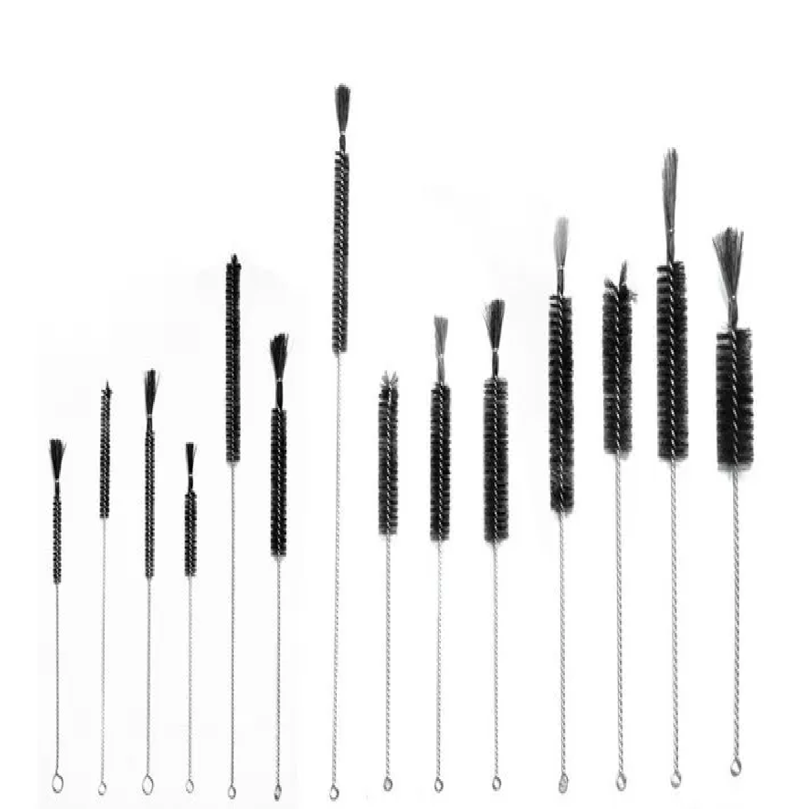 Escovas fabricadas em nylon, indicadas para a limpeza de vidrarias laboratoriais e outros recipientes, especialmente provetas de 250 mL e 500 mL.