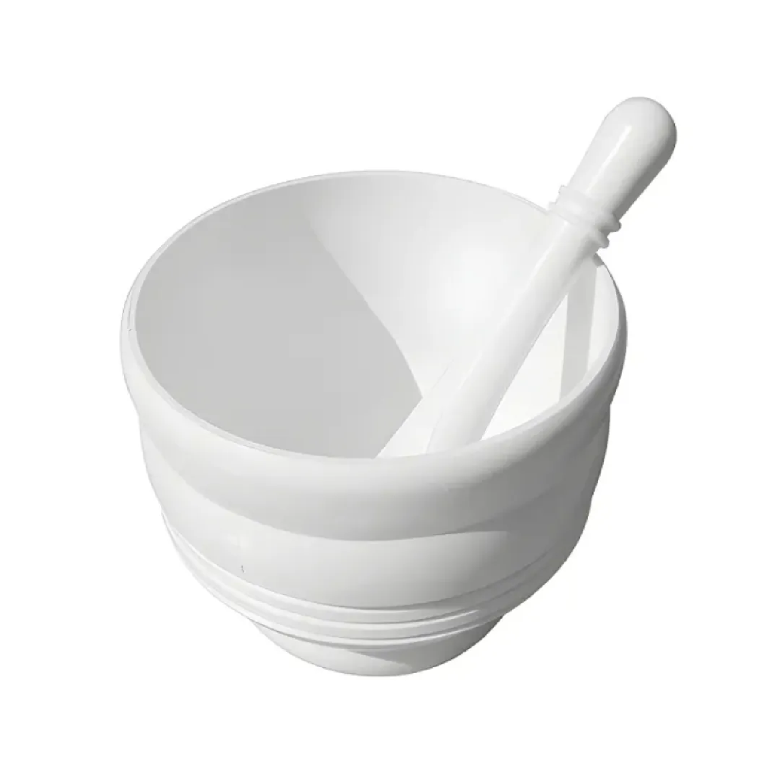 Gral com pistilo fabricado em polietileno (PE), indicado para trituração, maceração e homogeneização de sólidos em atividades laboratoriais, educacionais e técnicas.