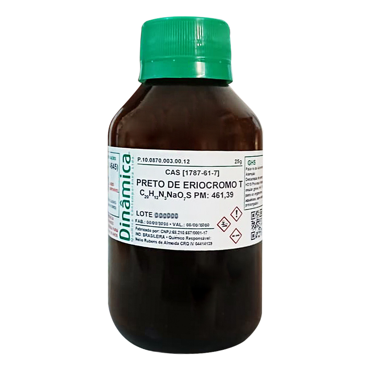 O Preto de Eriocromo T é um corante amplamente utilizado em laboratórios de química analítica como indicador em titulações complexométricas, especialmente em determinações de íons metálicos, como cálcio e magnésio. Também é empregado em pesquisas e análises de soluções em que se requer alta precisão.