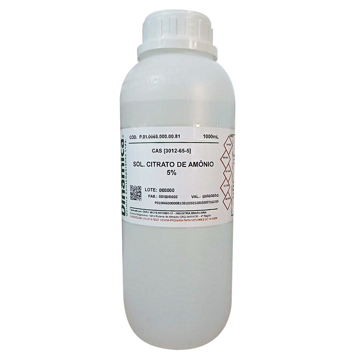 A Solução Citrato de Amônio 5% Aquosa é utilizada em laboratórios para análises químicas, titulações e procedimentos experimentais que envolvem sais de amônio. É destinada ao uso profissional em ambiente controlado.
